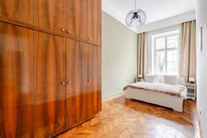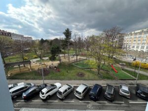Located in a stunning traditional Viennese building with classic high ceilings, this spacious two-bedroom apartment offers all the comforts of home, complemented by great amenities and a beautiful park view.