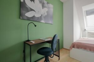 The apartment offers stunning views over a park, providing a tranquil and green oasis in the heart of the city. Enjoy the serenity and beauty of the park right from your window to relax and unwind. The ample natural light streaming into the apartment creates a warm and welcoming atmosphere, making it a delightful place to call home. The sunny interiors and thoughtfully designed layout ensure that you can enjoy a bright and cheerful living environment throughout your stay.