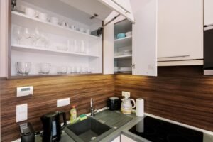 • Thoughtfully Designed Space: The studio is designed to maximize comfort and functionality, featuring a fully equipped kitchen, comfortable sleeping and living area, and a modern bathroom.