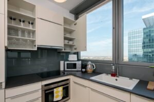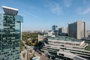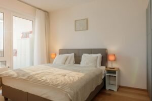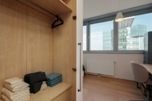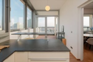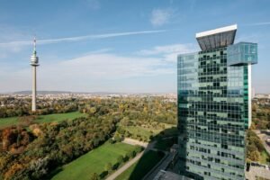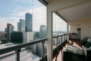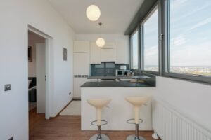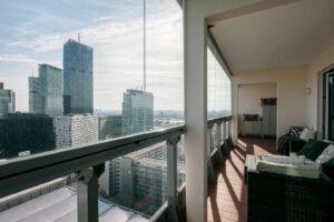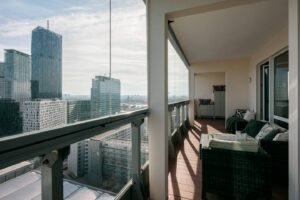 Welcome to Mischek Tower, a modern and stylish apartment with an amazing view from a very high floor and huge terrace, perfectly suited for long-term stays in Vienna. Our spacious apartment offers a comfortable and convenient base for professionals working at the nearby United Nations headquarters, Vienna International Centre, and the bustling Danube City. With stunning views, great furnishings, and all the amenities you need, you’ll find it easy to settle in and focus on what matters most.