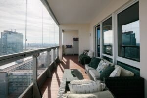 Enjoy the panoramic cityscape from your private balcony, unwind in the spacious living area, and take advantage of the fully equipped kitchen with a stunning view for home-cooked meals.